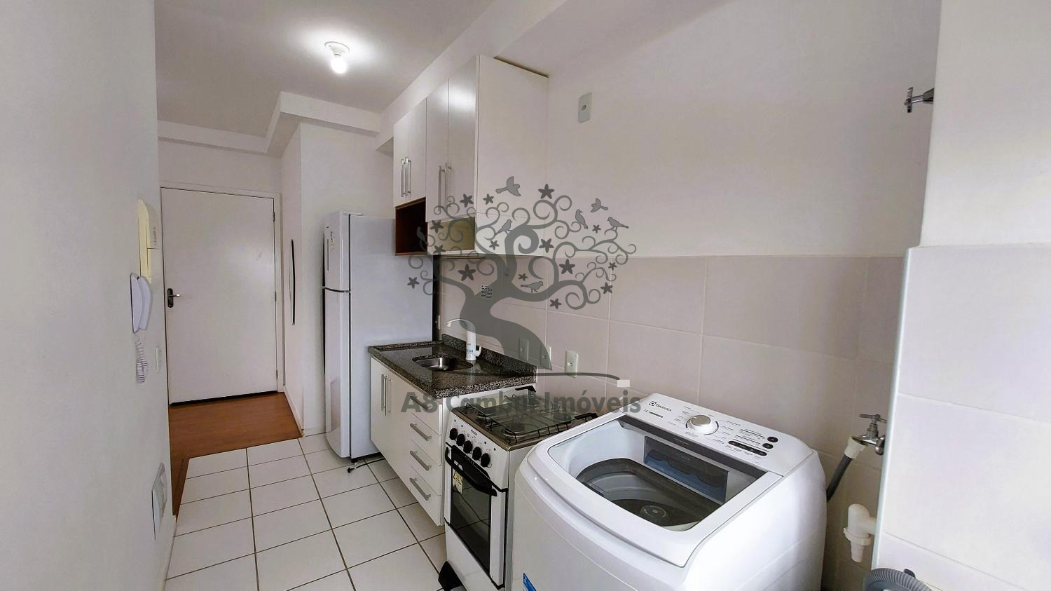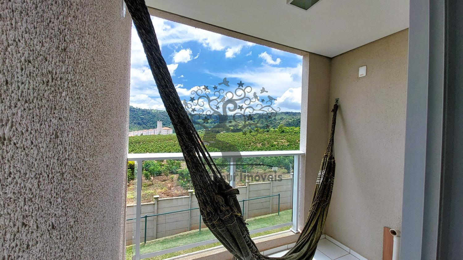 Com 49m², 2 dormitórios, sala, cozinha com armários, banheiro com box, varanda ampla com suporte para rede.