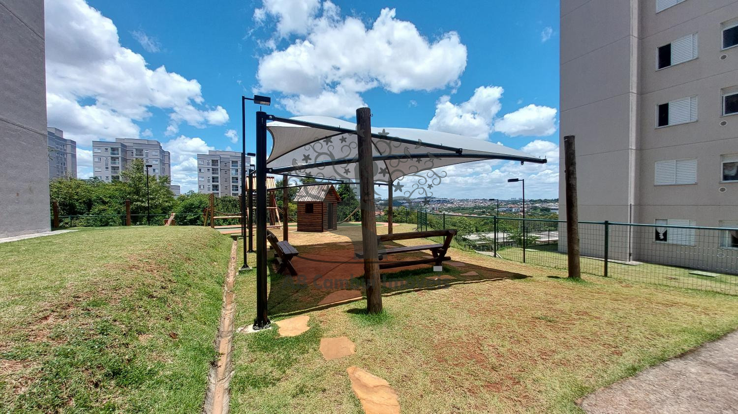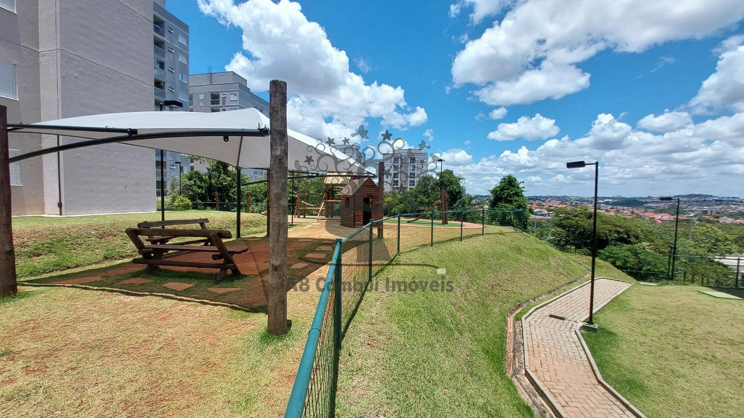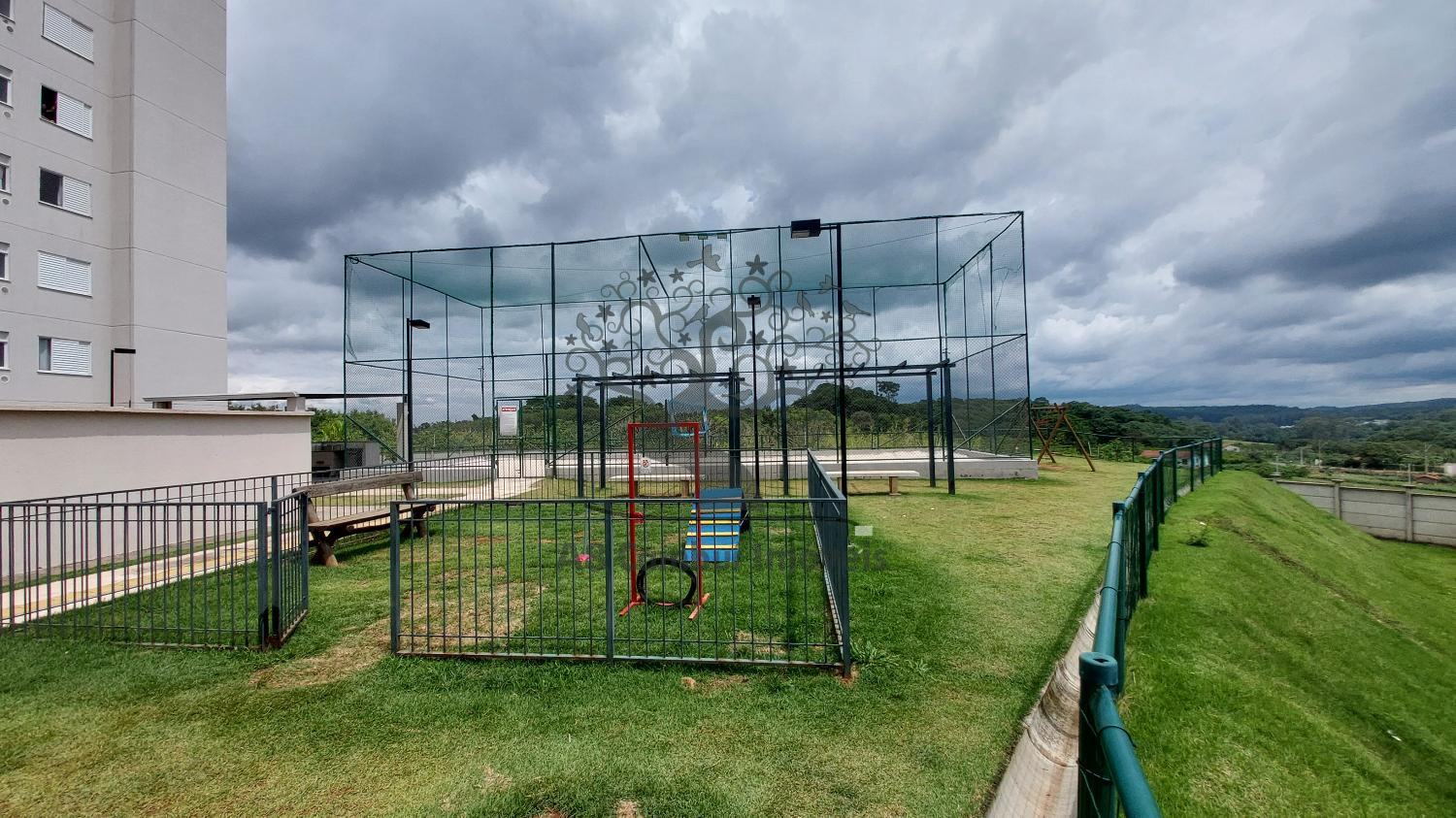 O condomínio oferece estrutura completa de lazer, com portaria 24h, dois elevadores por torre, playground, salão de festas, academia, churrasqueiras, quadra poliesportiva, quadra de beach tennis, mini mercado e praça central com bosque interno.