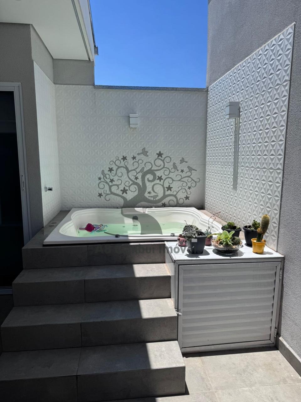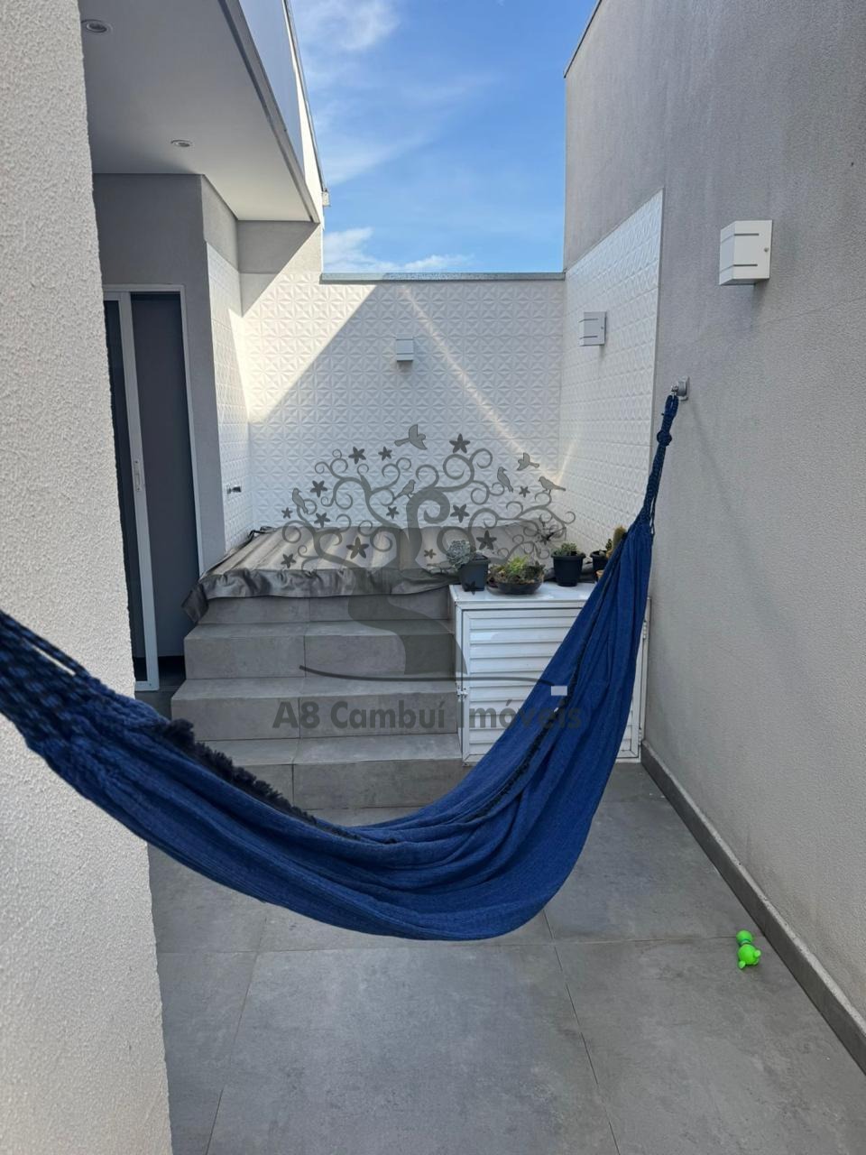 O quintal é um diferencial, com churrasqueira, planejados, pia de apoio e jacuzzi, perfeito para momentos de lazer com a família e amigos. O imóvel possui 2 vagas de garagem.