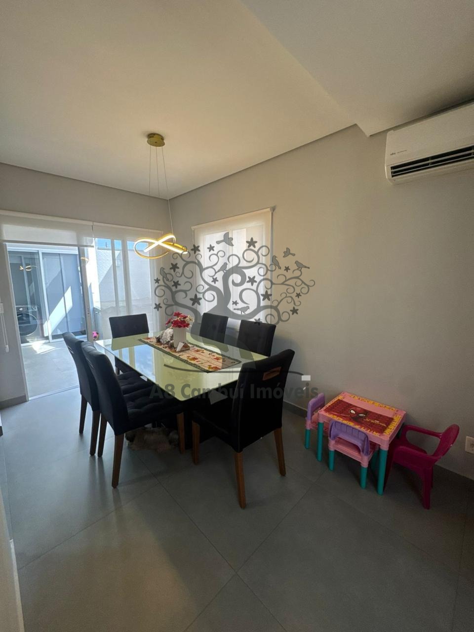 No piso térreo, dispõe de sala de estar e sala de jantar integradas, com ar-condicionado, além de um charmoso canto do café e lavabo. A cozinha é totalmente planejada, com armários e despensa, oferecendo excelente aproveitamento de espaço. Área de serviço independente.