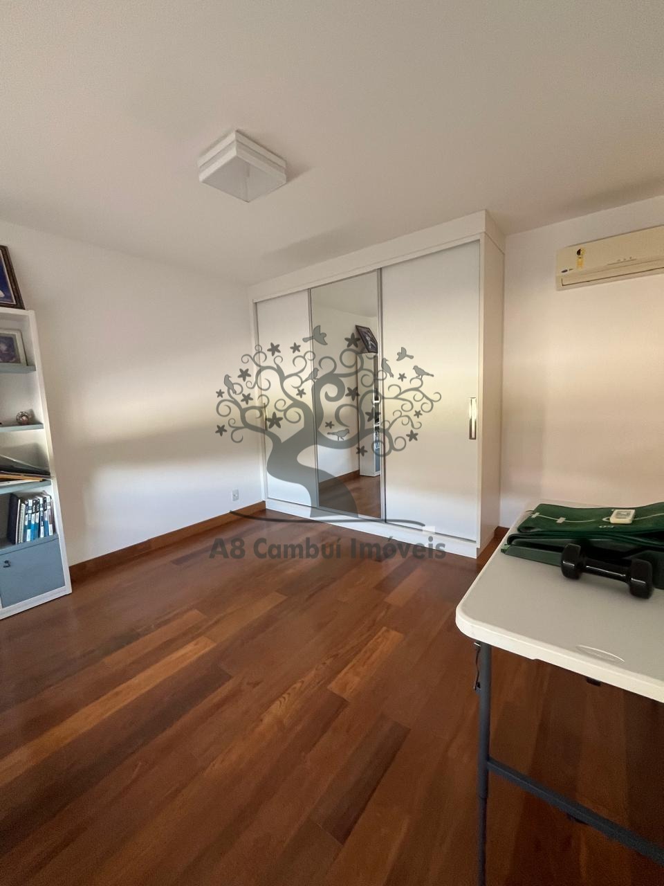 A casa é completa em armários planejados e equipada com ar-condicionado em diversos ambientes.
