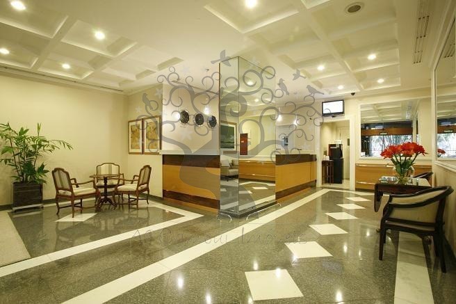 A estrutura conta com restaurante 24 h, piscina aquecida, sauna, salão de jogos, academia e sala de reuniões.